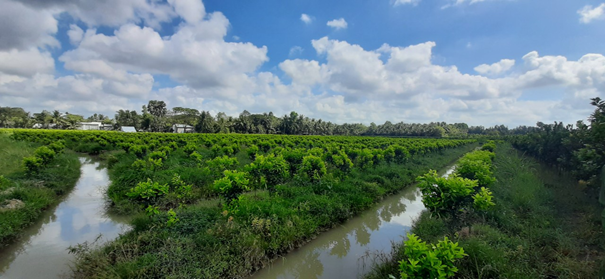 Ảnh: nông dân Tam Bình chuyển đổi diện tích trồng lúa sang trồng cây cam sành